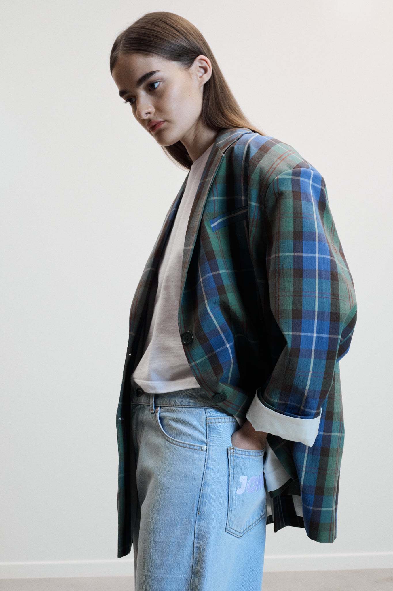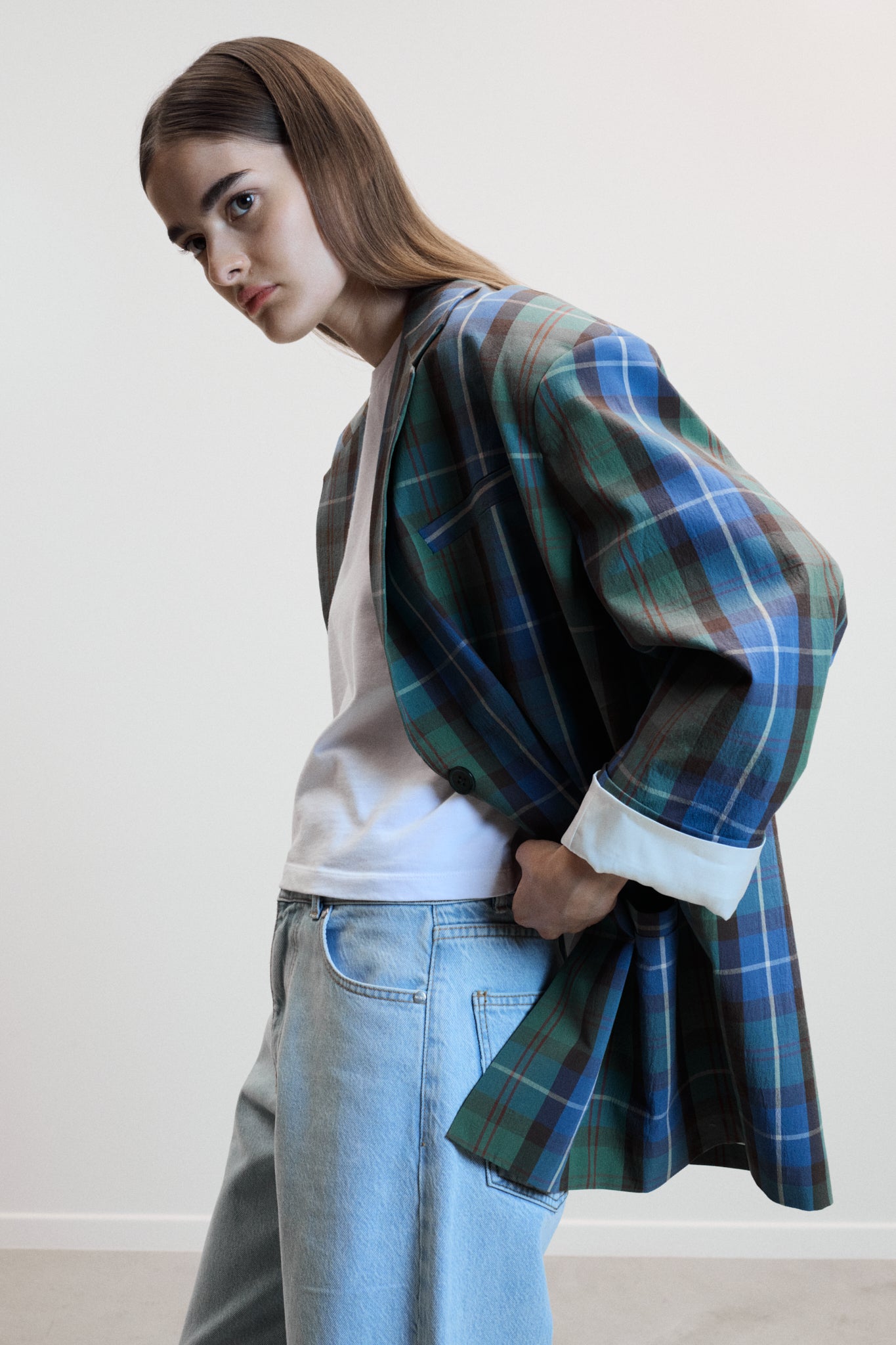 The LOLA blazer in blue check delivers effortless, contemporary style with a seasonless silhouette. Its oversized fit, bubble hem, and gathered sleeves create a relaxed yet refined look, perfect for modern layering or standalone statement.