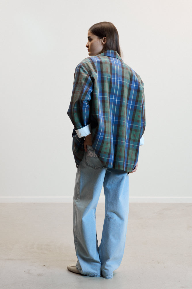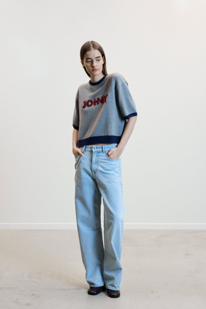 The GLADYS denim is a contemporary take on light denim jeans, defined by a fluid structure and chain detailing. Crafted in blue cotton, the silhouette feels lightweight and effortless while maintaining a clean, modern edge. A seasonless essential designed for ease, movement, and understated confidence.