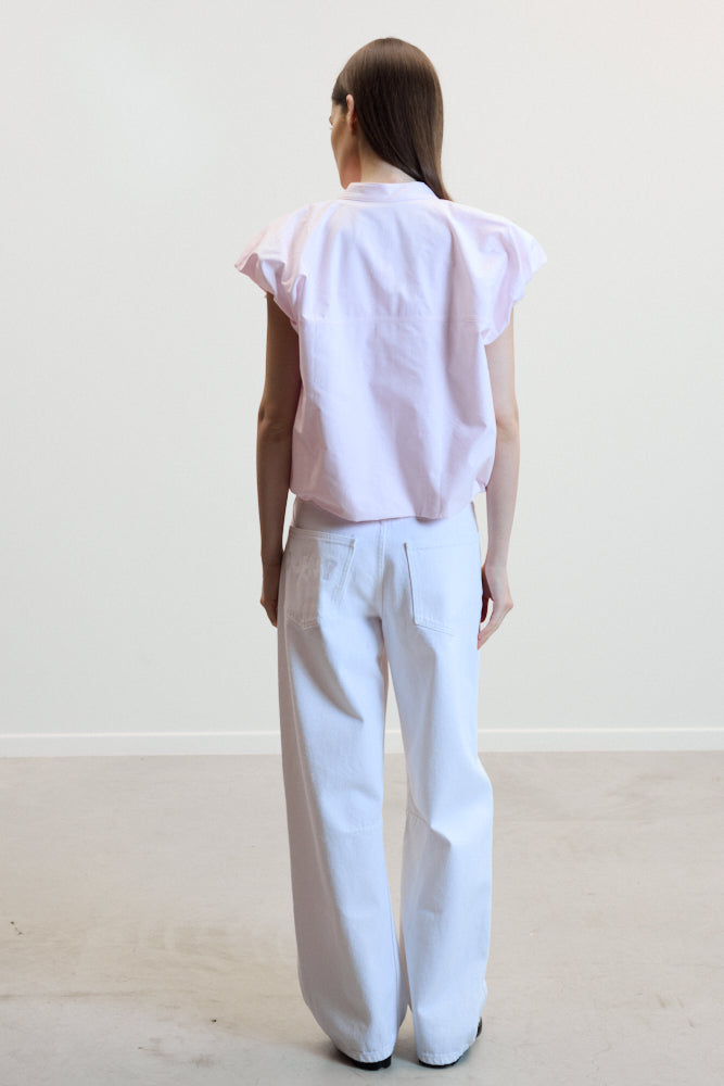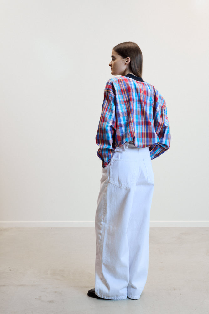 The GLADYS denim is a contemporary take on white denim jeans, defined by a fluid structure. Crafted in white cotton, the silhouette feels lightweight and effortless while maintaining a clean, modern edge. A seasonless essential designed for ease, movement, and understated confidence.
