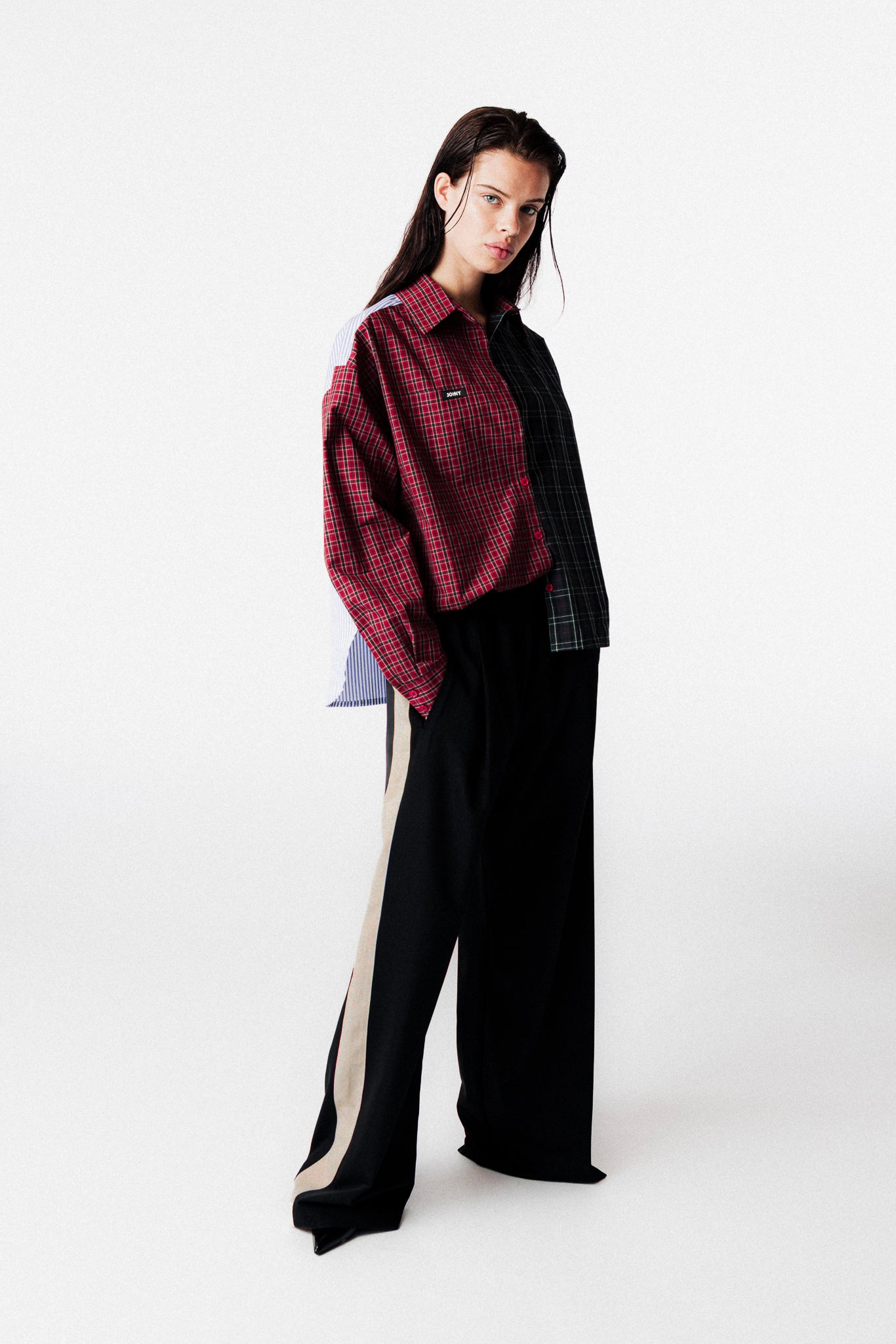 Wide leg trousers with elasticated waistband and contrasting side panel