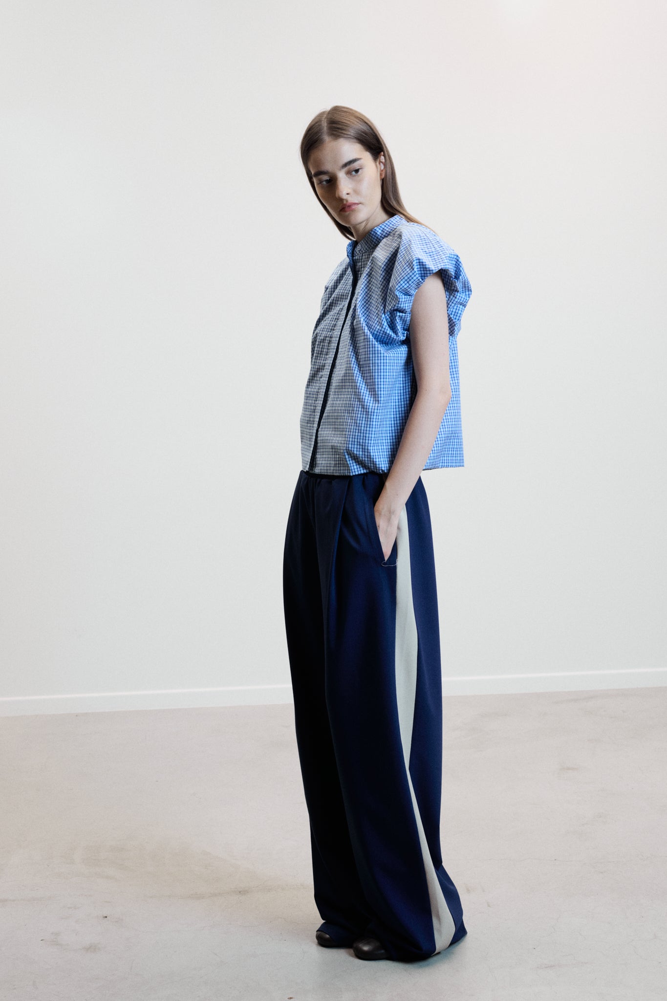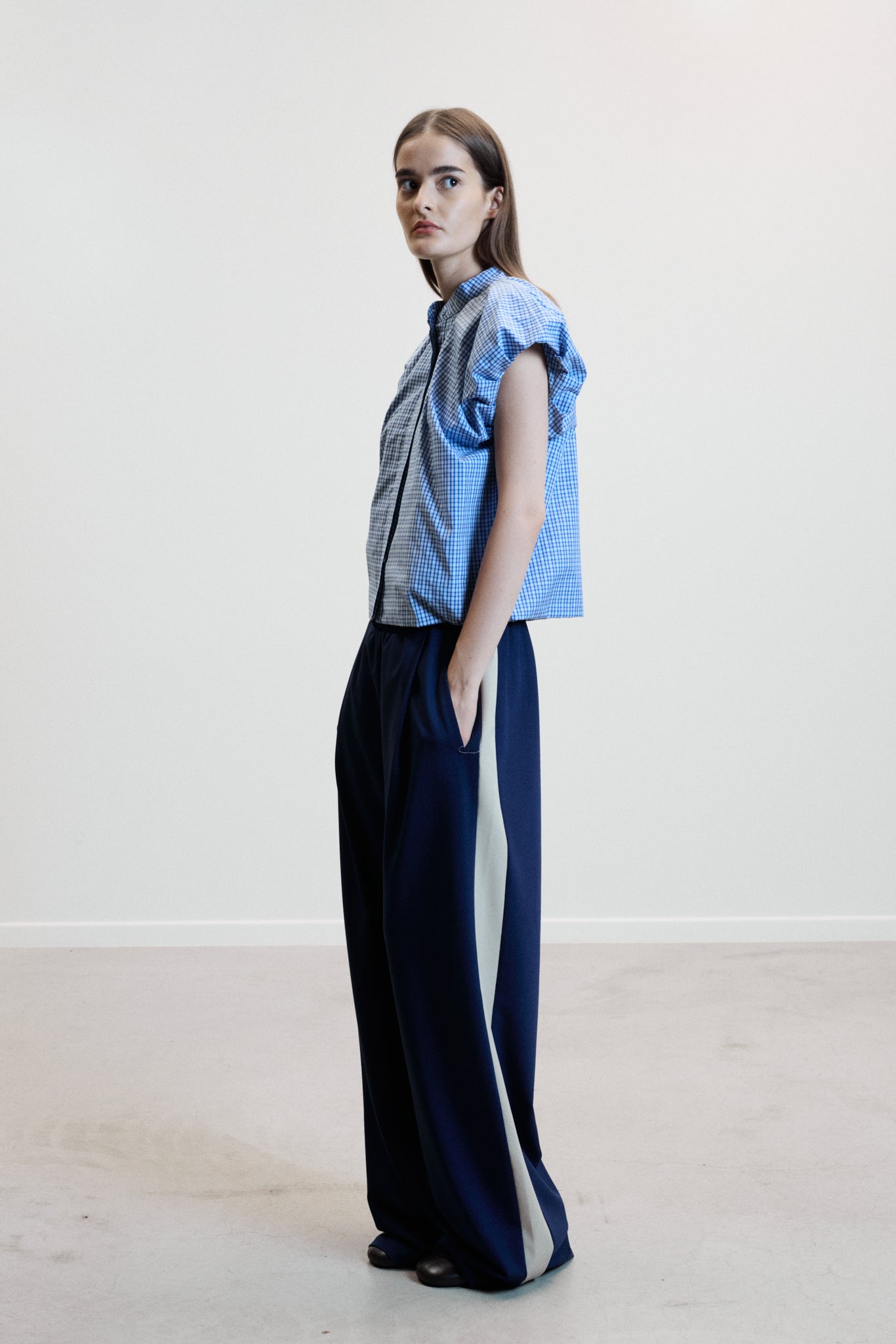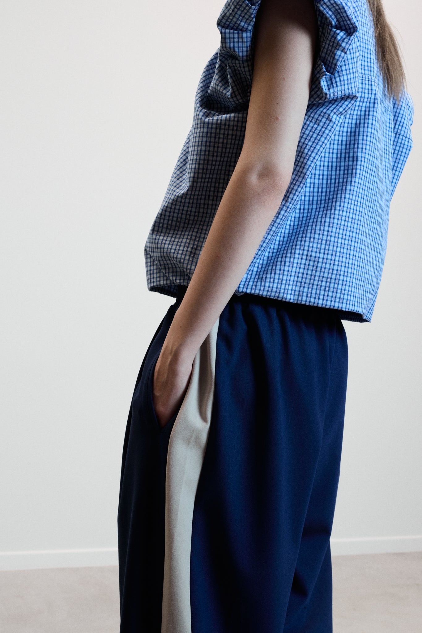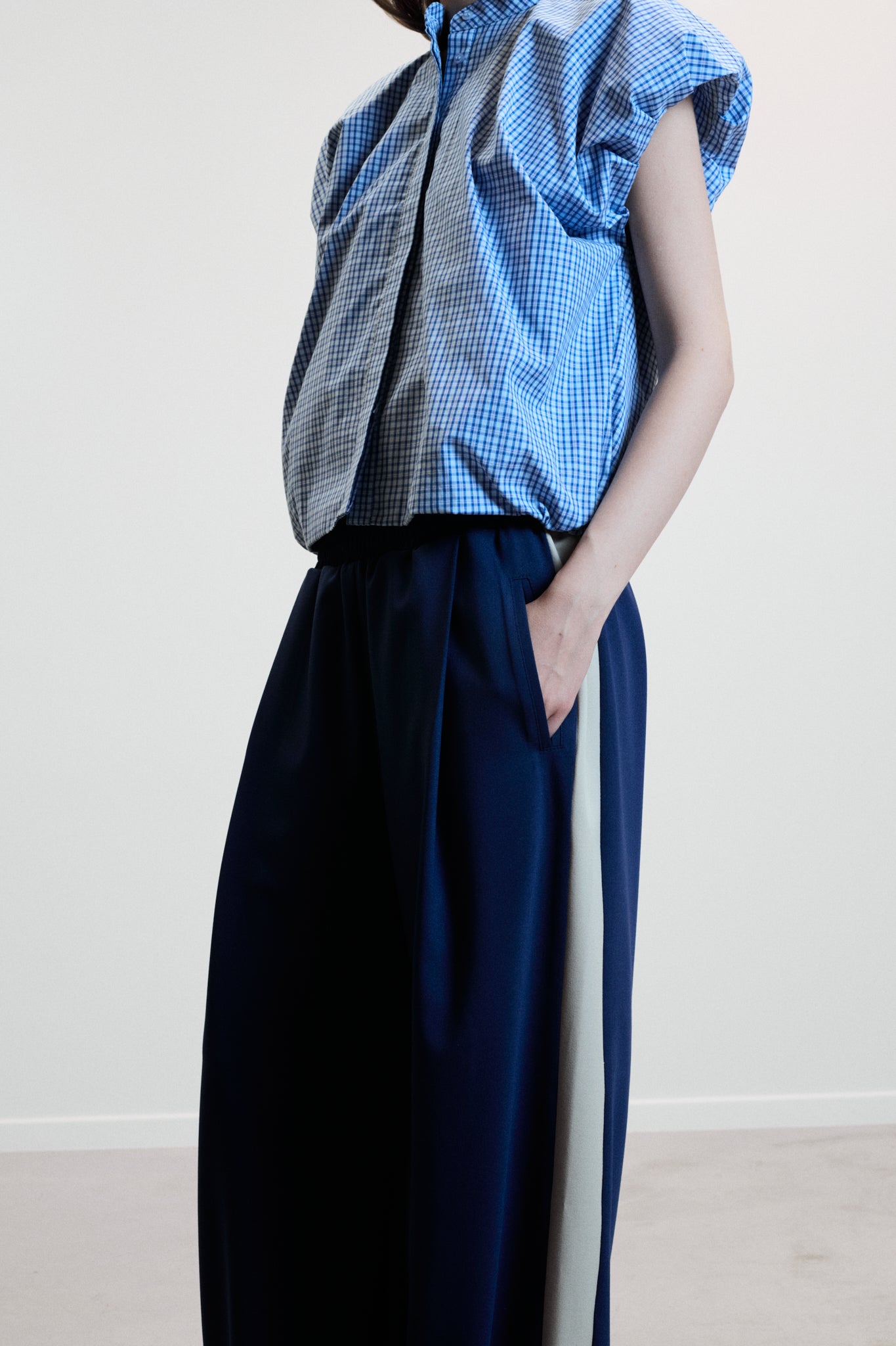 Key Feature: Wide-leg trousers with elasticated waistband and contrasting seam